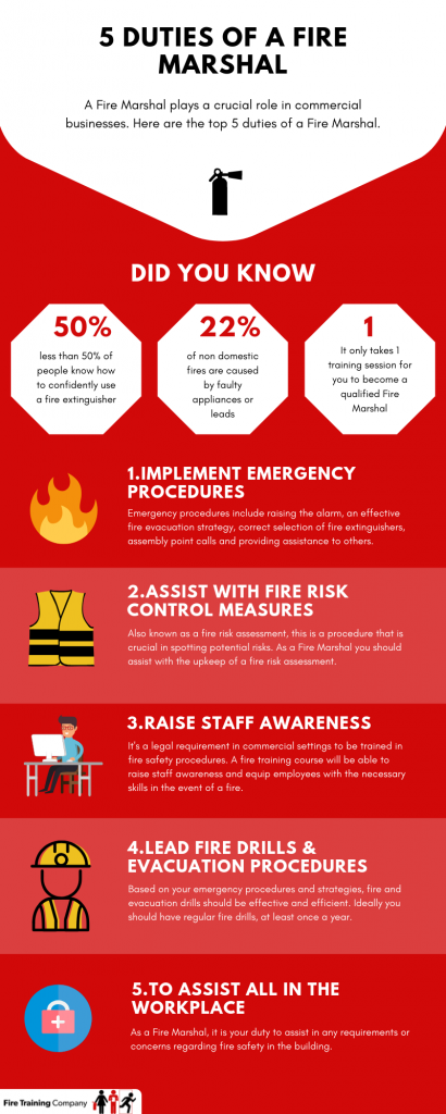 Hopefully, this poster serves as a reliable reminder for the fire marshal in your workplace of both their day-to-day and emergency duties. Before downloading this infographic, however, here’s a summary.